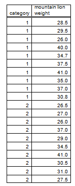 Table 1. Correct format for data for creating a scatterplot to go with a t-Test (categories will appear along the x-axis).